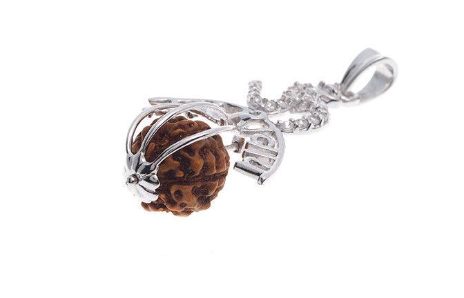18ct White Gold Cubic Zirconia 'Om Namah Shivay' & Rudraksh Pendant - Hindu religious pendant